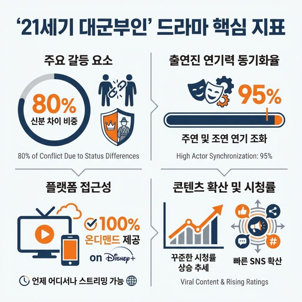 ‘21세기 대군부인’의 인기 요인은 로맨틱 코미디 장르의 전형적 재미에서 한층 더 나아가 신분 상승과 사랑이라는 보편적 주제를 현대적 감각으로 재해석한 데 있습니다. 평민 출신의 성희주가 재벌가 이안대군과의 관계를 통해 사회적 신분의 장벽을 뛰어넘는 이야기는 많은 시청자들의 공감을 이끌어냅니다.