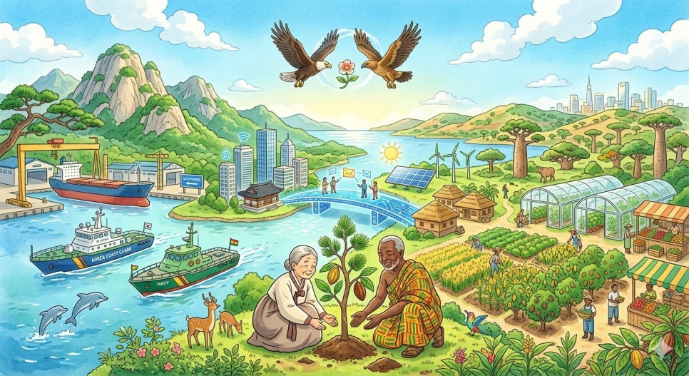 - 해양 안보 분야에서는 한국과 가나가 체결한 해양 안전 및 보안 협력 양해각서(MOU)에 기반해 실질적 능력 강화와 정보 공유 체계가 구축될 것입니다. 특히, 해적 행위와 불법 무역 근절을 위한 협력 훈련 프로그램과 공동 대응 매커니즘이 단계적으로 확대될 예정입니다. 한국 해양경찰과 가나 해군의 공동 교육 및 세미나가 정례화되며, 위기 상황 대응 역량이 크게 향상될 것입니다.