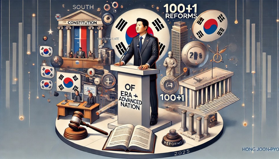 - 홍준표 후보는 2025년 4월 18일에 '선진대국시대'라는 비전을 발표하며 자신의 정치적 방향성을 명확히 하였습니다. 그는 이 비전의 핵심으로 국정 운영의 혁신을 강조하며, 새로운 대한민국을 만드는 데 초점을 맞추고 있습니다. 홍 후보는 정부의 개혁을 위한 구체적인 방안을 제시하며, 총 100개의 혁신 과제를 포함한 '100+1' 공약을 내세웠습니다. 이 중 정치 분야에서는 18개의 개혁 방안이 포함되어 있습니다. 이 모든 내용을 통해 그는 국민들에게 미래의 비전을 전달하고 공감대를 형성하고자 하였습니다.