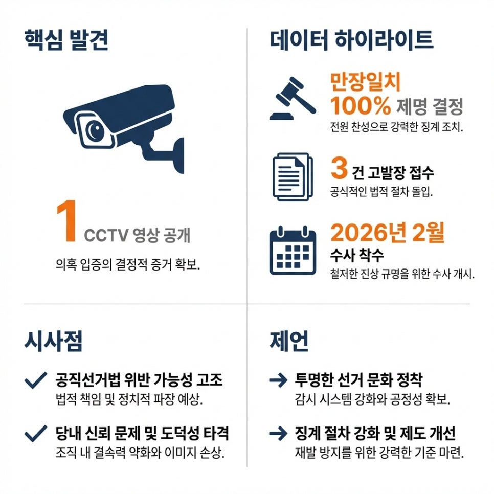 정치권 또한 이번 사안을 계기로 투명한 선거 문화 정착과 재발 방지 대책 마련에 힘써야 할 것입니다. 향후 수사 및 법적 절차의 진행 상황을 면밀히 주시하며, 필요한 결정을 적시에 내리도록 만전을 기해야 하겠습니다.