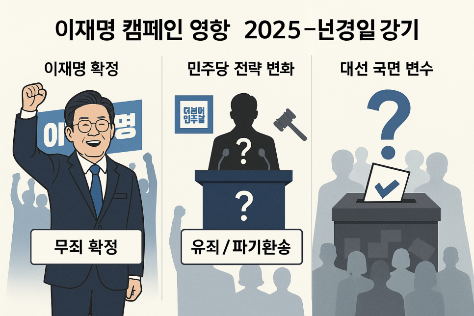 - 한편으로 무죄가 확정되는 경우, 이재명 후보는 대선 운동에 활력을 얻을 것으로 예상된다. 이는 2025년 5월 대선 관련 일정에 중요한 변수가 될 수 있다. 실제로, 민주당은 대선 후보 등록 마감일인 5월 10일 이전에 선고가 이루어질 수 있었던 이유를 정치적 고려로 보고 있으며, 이는 대선 경선에 긍정적인 효과를 미칠 것으로 분석된다.