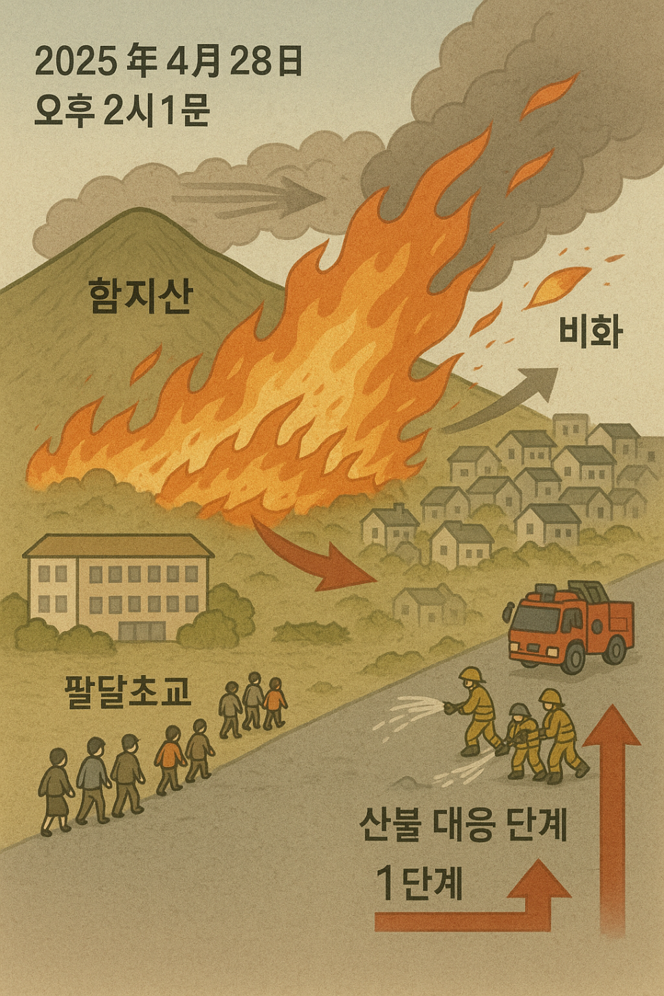 - 소방 대응 1단계: 산불 발생 시 초기 대응을 위한 기본적인 조치로, 소방력이 예비 동원되는 단계를 의미합니다. 이는 2025년 4월 28일 오후 4시 39분에 발령되었습니다.