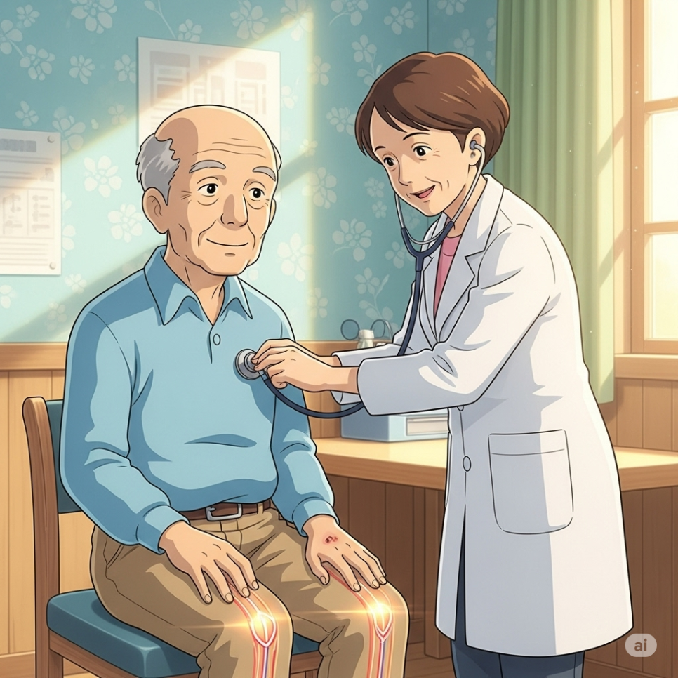 - 만성 정맥부전(Chronic Venous Insufficiency): 노화로 인해 혈관 기능이 저하되어 혈액이 다리에서 심장으로 원활하게 흐르지 않는 질환으로, 다리 부종과 같은 증상이 나타날 수 있습니다.