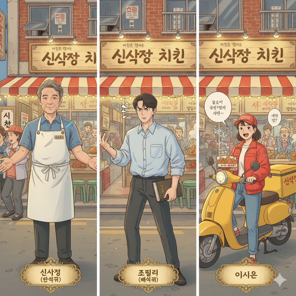 - 조필립 역의 배현성은 한때 엘리트 신입 판사였으나, 현재는 신사장의 치킨집에서 일하며 법과 현실의 괴리를 체감하는 인물로 그려집니다. 그는 철저한 원칙주의자로서, 매번 신사장의 비범한 접근 방식에 부딪혀 갈등을 일으킵니다. 이에 따라 조필립의 성장과 변화는 드라마 속 중요한 축을 형성하고 있으며, 그의 캐릭터는 시청자에게 깊은 인상을 남깁니다.