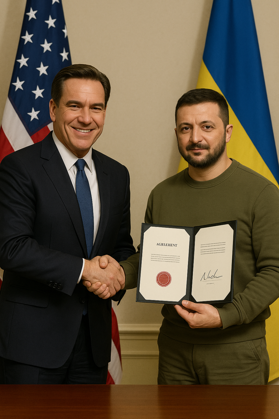 - 결국 양국은 수개월 간의 협상과 진통을 겪은 끝에 2025년 4월 30일 현지시간 오후, 백악관에서 공식적으로 광물협정과 재건투자기금 설립에 대한 협정에 서명하였다. 이를 통해 우크라이나의 희토류 및 다른 자원 개발에 대해 미국의 지분을 인정받으며, 동시에 러시아의 전면 침공 이후 제공된 막대한 재정적 지원을 공식 인정받는 계기가 되었다. 이 협정은 실질적으로 미국과 우크라이나 간의 역사적인 경제 파트너십 구축의 기초가 되었다.