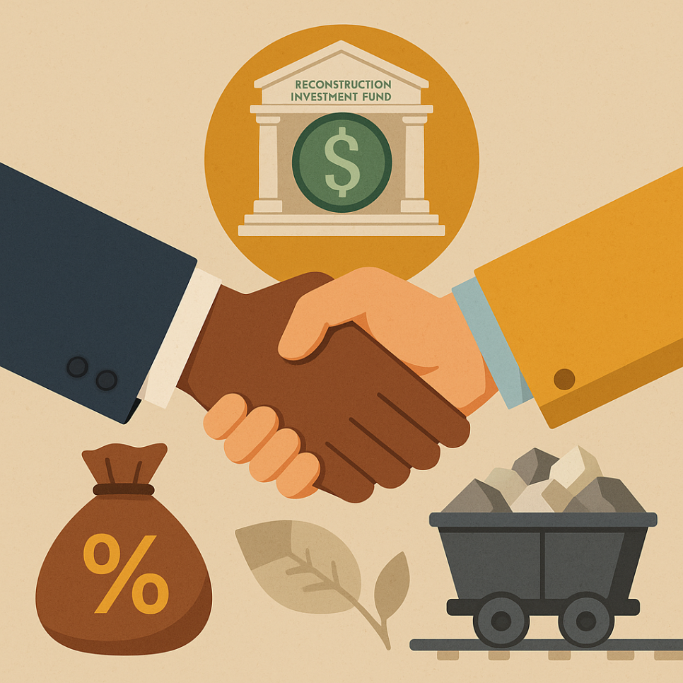 - 2025년 4월 30일, 미국과 우크라이나는 재건투자기금(Reconstruction Investment Fund)의 설립을 위한 협정에 서명하였습니다. 이 기금은 우크라이나의 희토류 및 다양한 광물 자원에서 발생하는 수익의 50%를 출연하여, 우크라이나의 파괴된 기반 시설을 복구하는 데 사용될 예정입니다. 이는 러시아의 전면적인 군사 침공에 의한 피해를 회복하기 위한 목적으로 설계되었습니다.