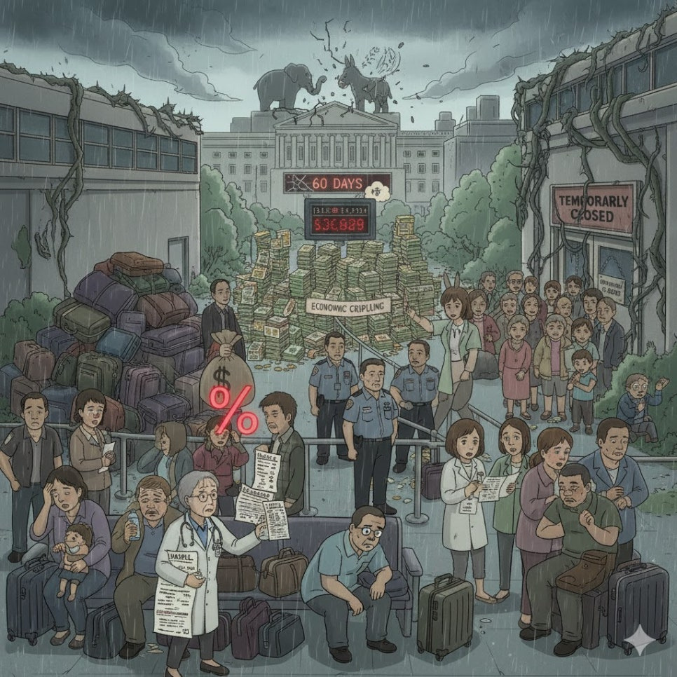 - 경제적 측면에서는 TSA 인력 공백으로 인한 항공 대란, 보건복지 서비스 중단 위기, 의료비 부담 급증과 함께 재무부 현금잔고 변동 등 복합적인 피해가 확인됩니다. 이러한 현실은 단기적인 혼란을 넘어서 사회 안전망 붕괴 및 경제 불확실성 심화로 이어질 가능성이 높아, 정치적 타협과 재정 정상화가 시급합니다.