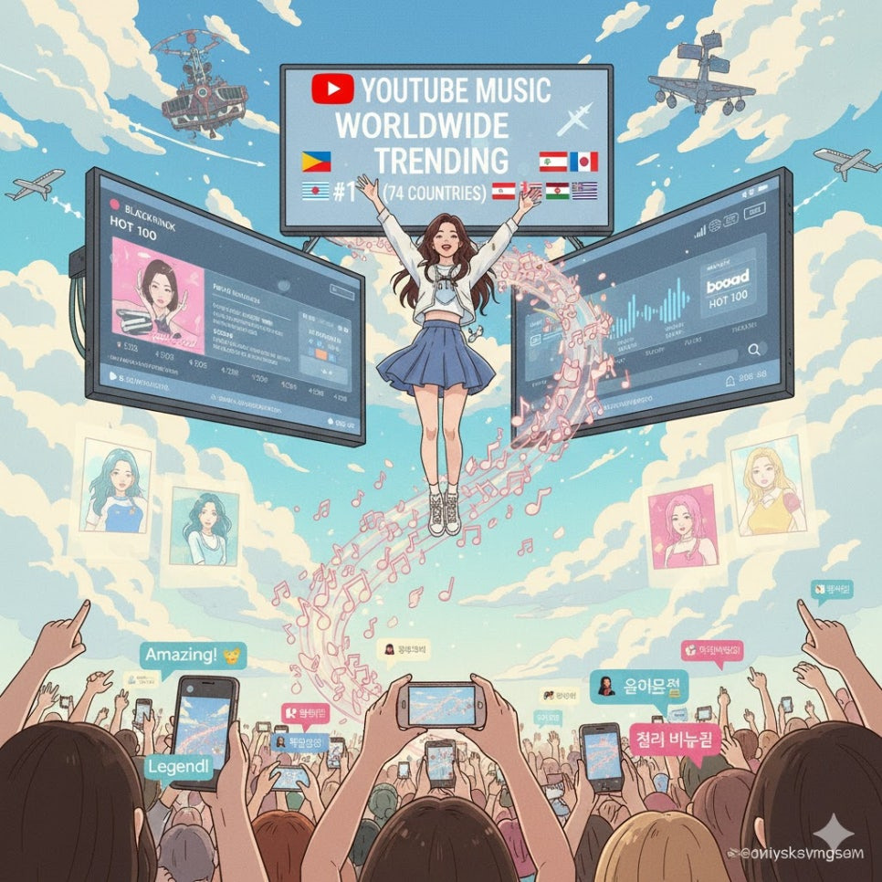 - 지수가 지난 2025년 10월 10일, 팝 가수 제인(ZAYN)과의 협업곡 '아이즈 클로즈드(EYES CLOSED)'를 발매하면서, 유튜브 뮤직 월드와이드 트렌딩 1위를 기록했습니다. 이는 74개국에서 발생한 일로, K-POP의 글로벌 확장 가능성을 보여주는 높은 지표입니다. 유튜브 뮤직에서의 성공은 단순한 뮤직 비디오 조회 수를 넘어, 지수가 가진 음악적 색깔과 제인과의 협업이 현지 팬들에게 큰 반향을 일으켰음을 의미합니다.
