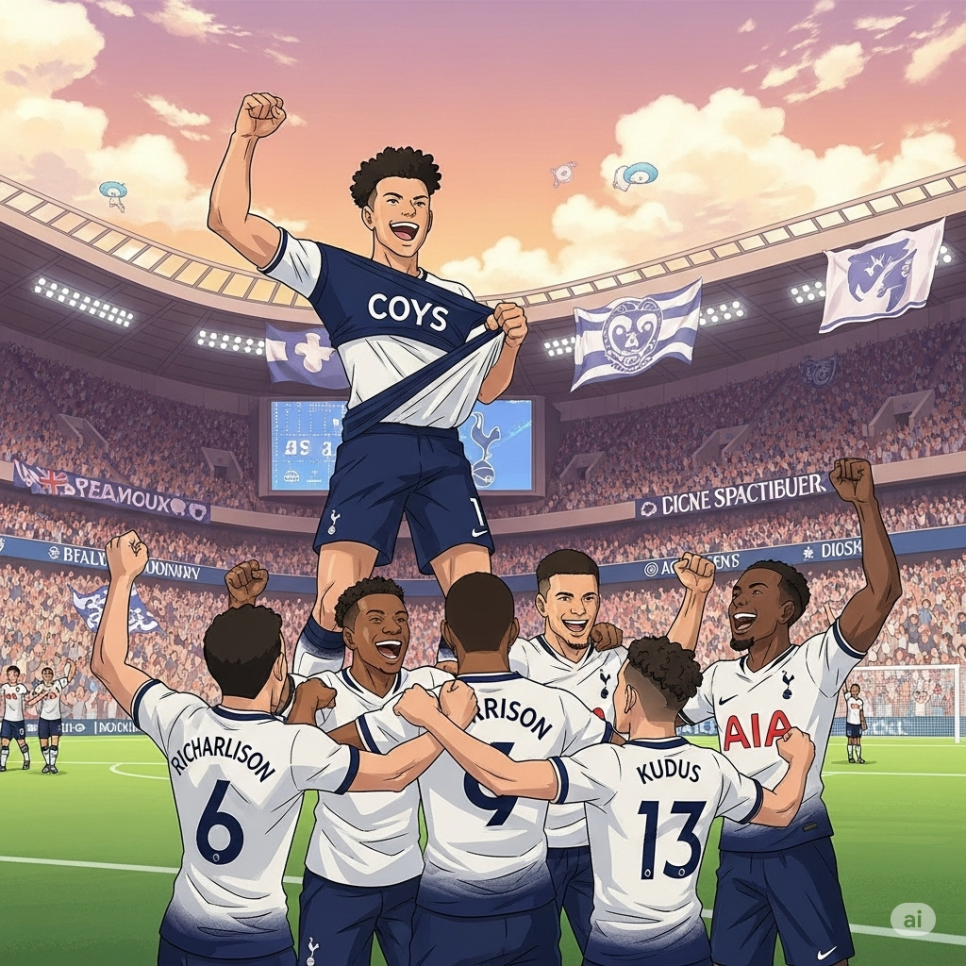 - 2025~2026 시즌의 시작을 알리는 개막전에서 토트넘은 손흥민이 빠진 상황에서도 3-0이라는 완승을 거두며 강력한 출발을 보였습니다. 이번 경기를 통해 팀은 손흥민 공백 속에서도 강력한 전력을 유지할 수 있다는 자신감을 얻었으며, 시즌 전체에 긍정적인 영향을 미칠 것으로 전망됩니다. 특히 히샬리송의 멀티골과 쿠두스의 출중한 활약은 그들이 손흥민의 빈자리를 메꾸는 데 큰 역할을 할 것이라는 기대감을 높이고 있습니다.