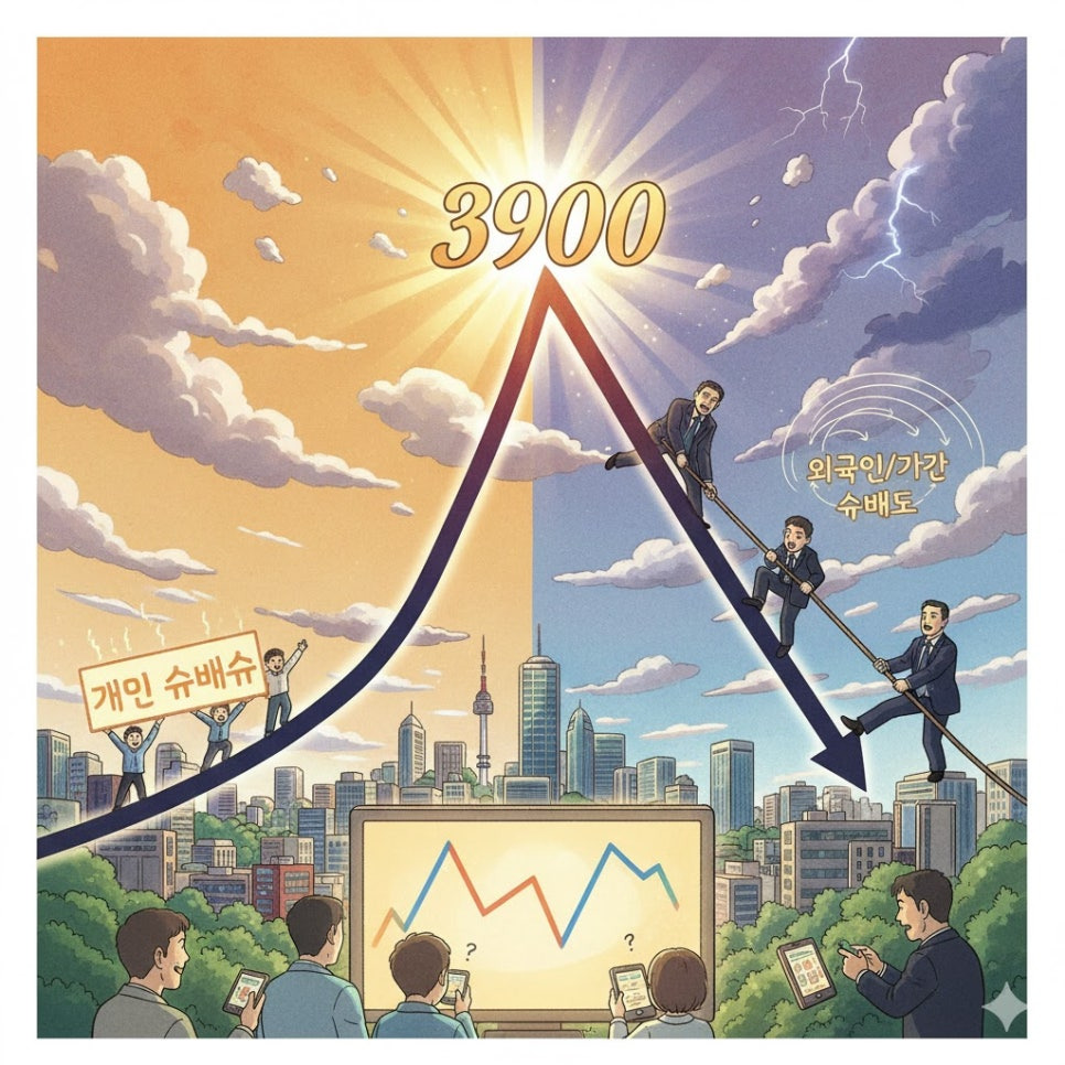 - 여러분은 투자자로서 흔들림 없는 판단력을 유지할 수 있습니까? 코스피가 역사적으로 처음으로 3,900선을 돌파한 후, 불과 몇 시간 만에 하락세로 전환되며 투자자들에게 혼란을 안겨주었습니다. 3,900선은 단순한 가격상의 의미를 갖는 것이 아니라, 한국 증시의 향후 방향성을 가늠할 수 있는 중요한 기준선으로 해석될 수 있습니다.