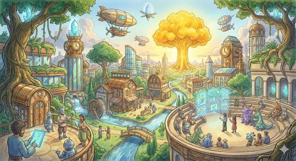 - 분산형 자율조직 (DAO, Decentralized Autonomous Organization): 탈중앙화된 거버넌스 구조를 가지며, 스마트 계약을 통해 규칙이 자동 집행되는 조직체입니다.