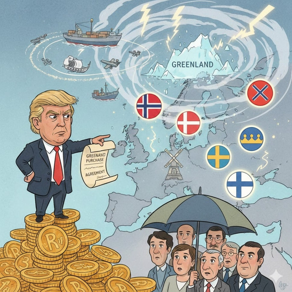 - 도널드 트럼프 대통령이 그린란드 인수 협상이 결렬될 경우 8개 유럽국가에 대해 전면 관세를 부과하겠다고 선언하며, 국제사회는 예상치 못한 무역·안보 갈등의 신국면에 직면했습니다. 혹시 한 국가가 전략적 요충지인 그린란드를 매입하는 과정에서 벌어진 이번 사건은 단순한 무역 분쟁을 넘어서 북대서양 지역의 지정학적 질서에 중대한 영향을 미칠 가능성을 내포합니다.