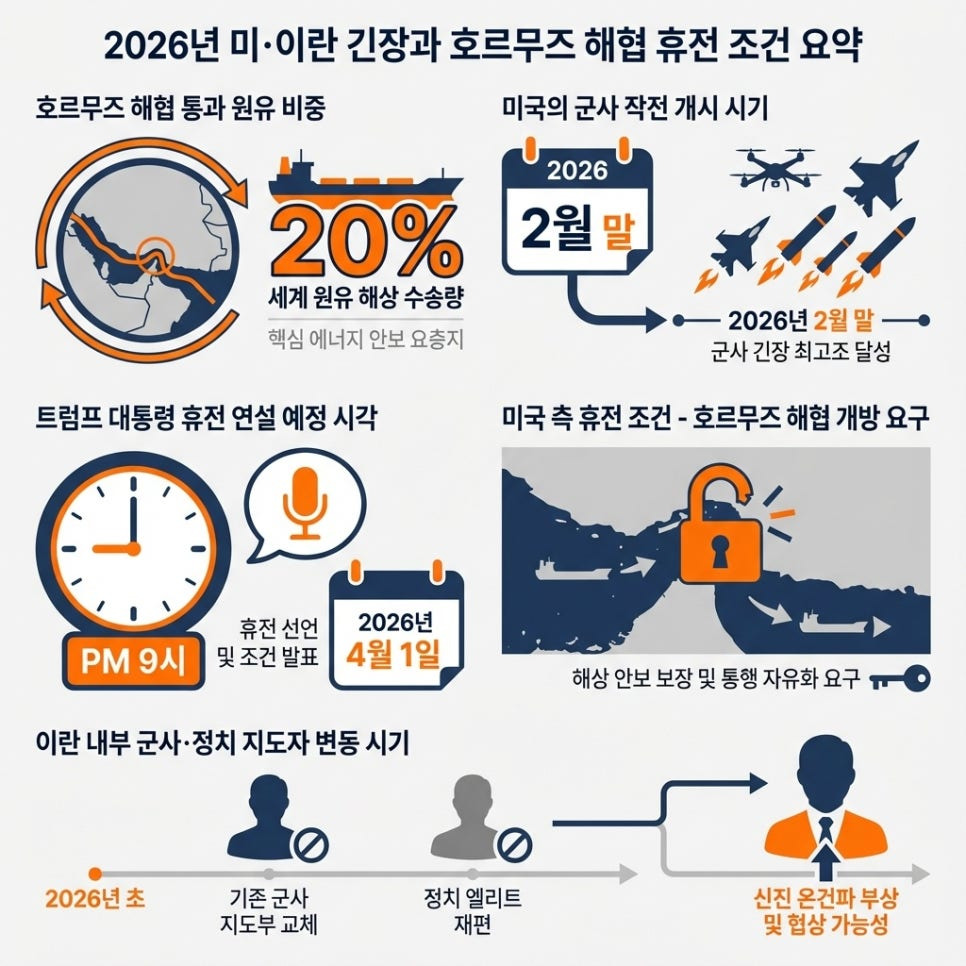 2026년 미·이란 긴장과 호르무즈 해협 휴전 조건 요약