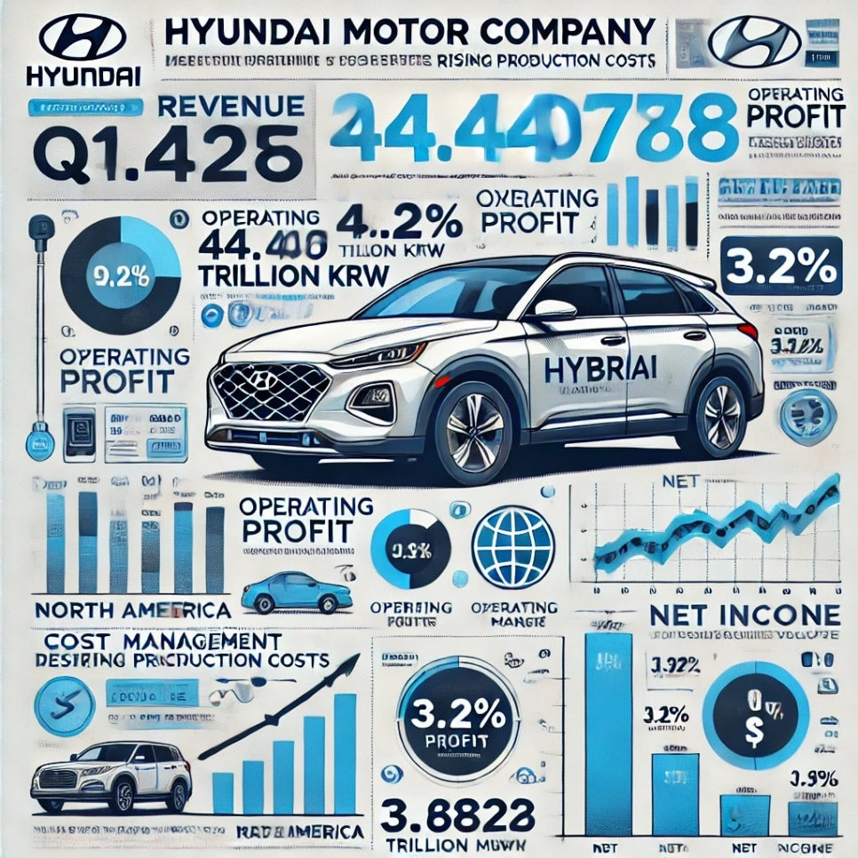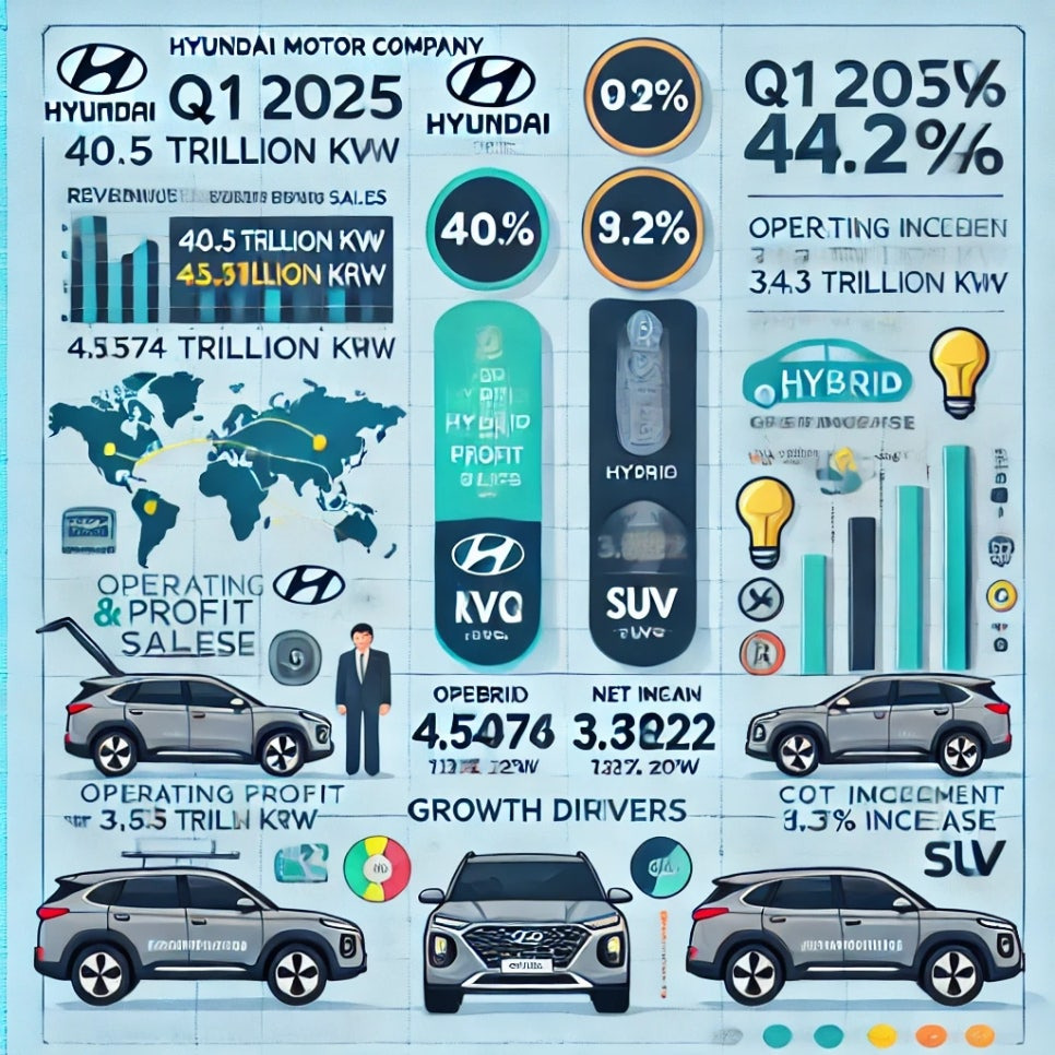 - 2025년 1분기 현대차의 매출은 44조4,078억원으로, 2024년 같은 기간의 40조5,000억원에 비해 9.2% 증가했습니다. 이는 글로벌 자동차 시장에서 하이브리드 및 SUV 모델의 판매 증가가 주요 요인으로 작용하였음을 보여줍니다. 2024년의 실적은 내수 시장 침체에도 불구하고, 제네시스 및 하이브리드 차종의 해외 판매 비중을 늘려 위기를 극복한 결과였습니다. 이러한 판매 믹스의 개선과 제품 다양화를 통해 현대차는 지속적인 성장을 이루어냈습니다.