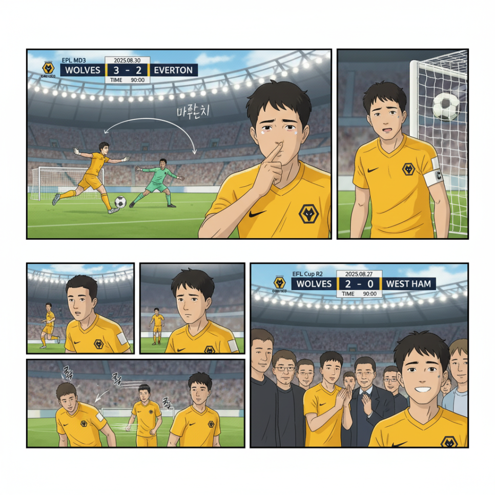 - 축구의 날은 늘 기대로 가득 차 있습니다. 특히 주장이 되어 필드에 나선 선수는 그 기대감이 배가되기 마련입니다. 황희찬은 2025년 8월 27일 울버햄프턴에서 열린 웨스트햄과의 리그컵 2라운드 경기에서 주장 완장을 차고 소중한 선발 출전을 했습니다. 팬들과 동료들의 관심 속에서 맞이한 이 경기는 단순한 경기 그 이상의 의미를 지니고 있었습니다. 하지만 첫 기회에서 그는 아쉽게도 페널티킥을 실축하며 심리적인 압박 속에 놓이게 되었습니다.