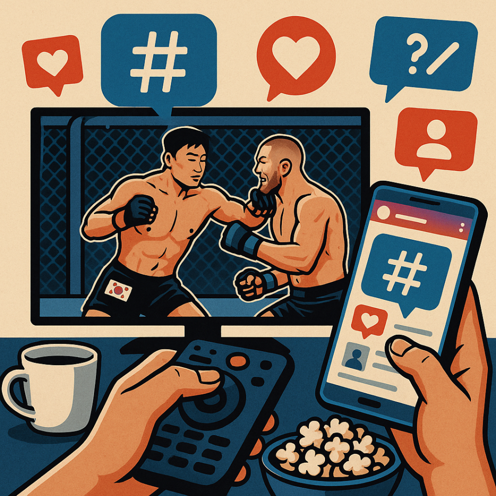 - 생중계 중에는 SNS에서의 소통이 재미의 중요한 요소입니다. 따라서, 생중계와 함께 해시태그를 활용하여 경기와 관련된 내용을 실시간으로 공유하고 소통해주세요. 'ROAD TO UFC' 공식 해시태그 사용은 추천의 한 예입니다. 예를 들어 #RoadToUFC, #KoreanFighters 등의 태그를 통해 전 세계 팬들과 소통하는 것도 큰 재미입니다.