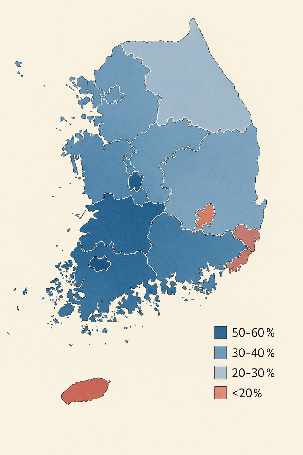 - 투표 참여율을 향상시키는 데 있어 지역 간 차이도 중요한 요소로 작용합니다. 예를 들어, 전남 지역의 사전투표율이 56.50%로 가장 높았던 반면, 대구는 25.63%로 가장 낮은 수치를 기록했습니다. 이러한 지역별 차이는 정치적 지지 구조와 밀접히 연관되어 있으며, 더불어민주당에 대한 지지세가 강한 호남 지역에서는 정권 심판론이 사전투표를 활성화한 데 비해, 영남 지역에서는 부정선거 음모론이 작동하여 본투표를 선택할 가능성을 높였던 것으로 분석됩니다.
