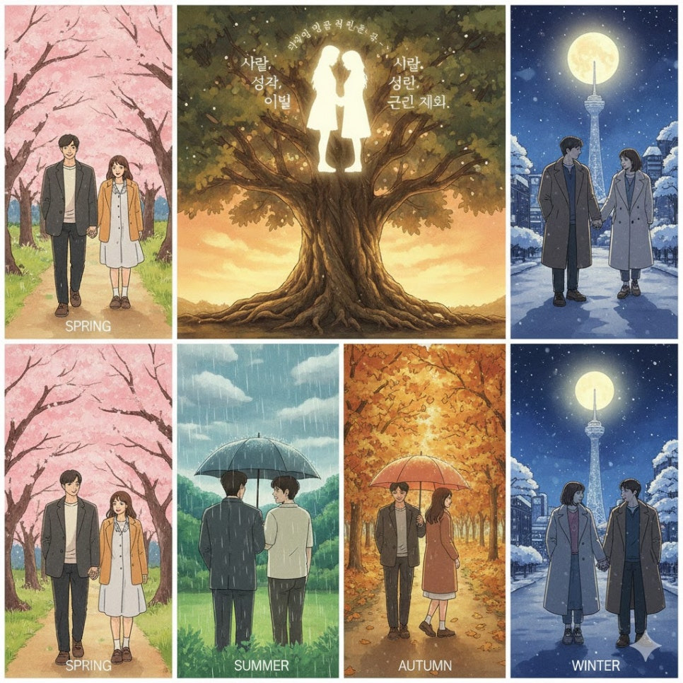 - 본 리포트는 2025년 JTBC 토·일 주말 로맨스 드라마 『사랑과 이별, 그리고 재회의 계절들』을 대상으로, 작품 내러티브와 연출기법, 그리고 국내외 시청자 반응의 총체적 분석을 수행합니다. 드라마는 대학 시절 두 번의 연애와 이별을 겪은 주인공들이 사회 진출 후 재회하며 다시 사랑을 시작하는 과정을 ‘고도를 기다리며’ 모티프와 사계절을 감성적으로 표현하여 그렸습니다. 주요 발견으로는 상징적 모티프가 내러티브 깊이를 강화하고, 계절 변화가 감정선 전개와 긴밀히 결합되어 뛰어난 몰입도를 제공한다는 점입니다.