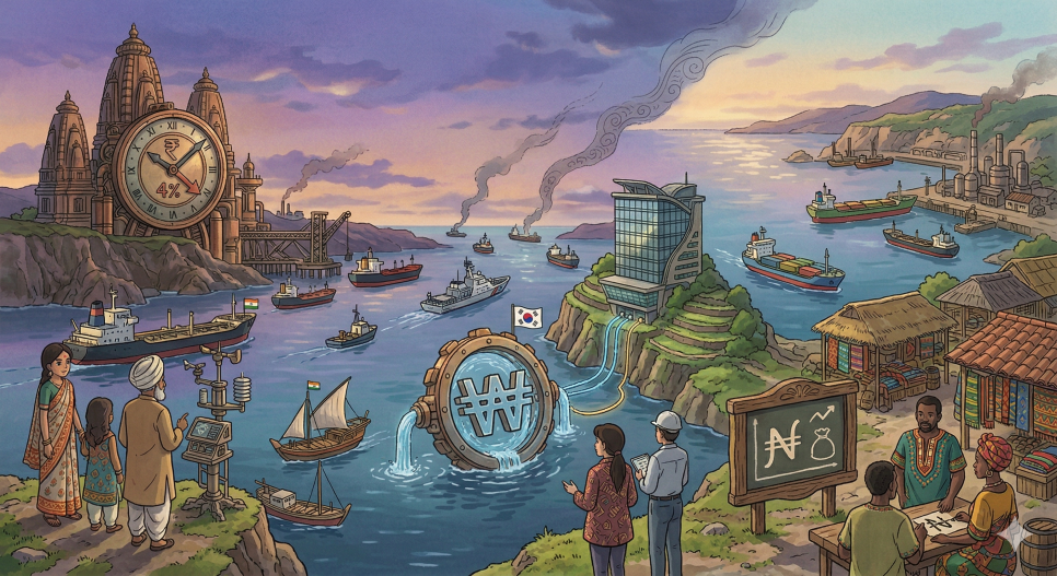 2026년 3월 중동지역 지정학적 긴장의 심화와 원유 가격 급등은 인도, 한국, 나이지리아 등 주요 신흥국의 통화시장에 상당한 영향을 미쳤습니다. 특히 각국의 통화 환율은 원유 수입 비용 상승과 글로벌 투자 심리 변화에 직·간접적으로 노출되며 변동성이 확대되었고, 이에 대응하는 중앙은행들의 정책적 움직임도 강화되었습니다. 이들은 지정학적 외부 충격과 원유 가격 변동이라는 공통 환경 속에서 각기 다른 경제 구조와 정책 운용 체계에 따라 독특한 환율 변동 패턴과 정책 대응을 보인다는 점에서 본 섹션의 핵심 분석 대상이 됩니다.
