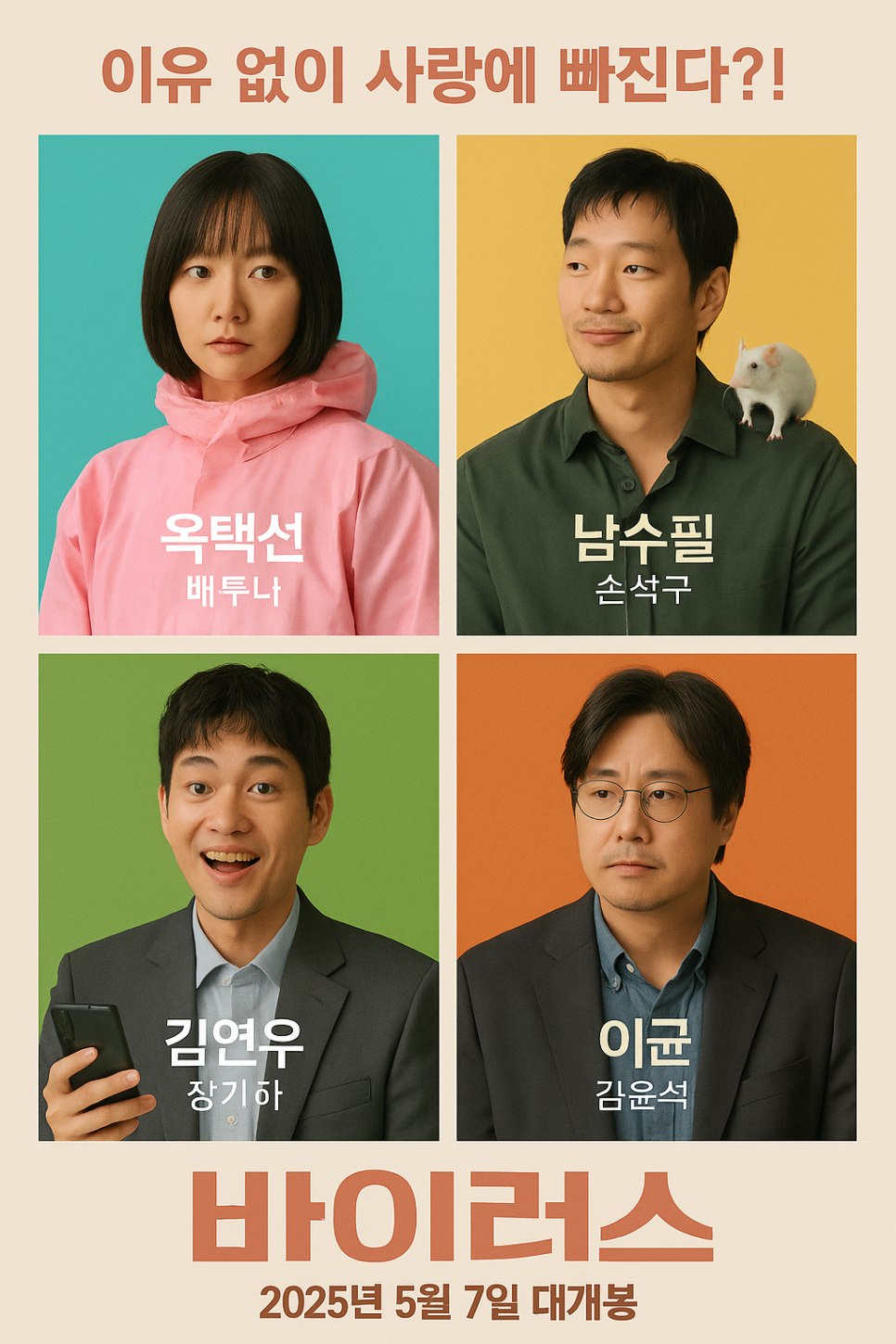 - 2025년 5월 7일 개봉을 앞둔 영화 ‘바이러스’는 독특한 콘셉트와 캐릭터들로 많은 기대를 모으고 있습니다. 이 영화의 매력 포인트 중 하나는 최근 공개된 4인 4색 캐릭터 영상입니다. 각 캐릭터는 톡소 바이러스에 의해 예기치 않은 사랑에 빠지는 이야기를 중심으로 구성되며, 서로 다른 배경과 성격을 지닌 인물들이 각각의 매력을 발산합니다.
