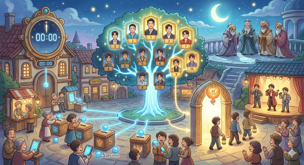 국민 투표는 ‘무명전설’ 준결승 과정에서 시청자가 직접 참여하여 각 도전자에게 표를 행사하는 중요한 절차입니다. 하루 최대 5명까지 투표할 수 있는 제한이 있어 시청자들은 신중한 선택을 하도록 유도되며, 이는 다수의 참가자가 집중적으로 표를 받는 현상을 방지하고 투표의 공정성을 강화합니다. 이렇게 투표 횟수를 제한함으로써 다양한 참가자가 고루 관심을 받고 경쟁할 수 있는 환경이 조성됩니다.