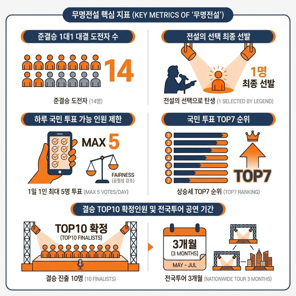“무명전설” 준결승 핵심 경쟁 지표 및 국민 투표 현황