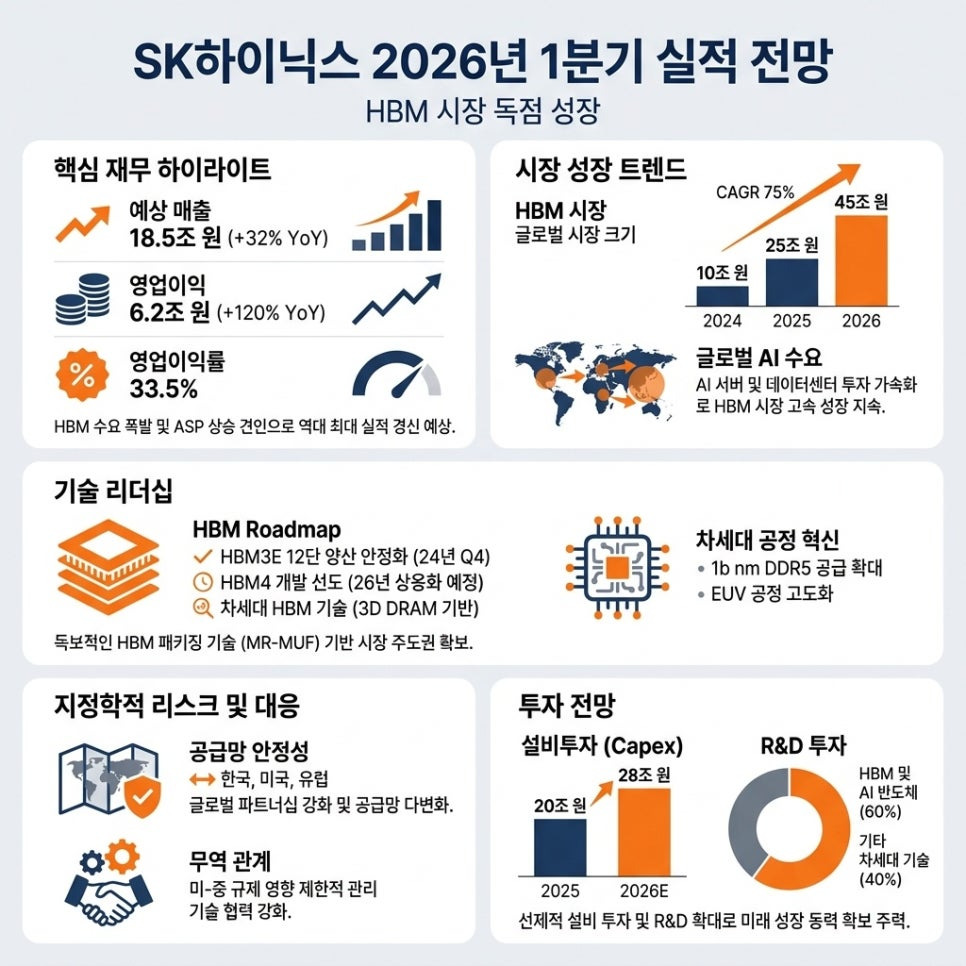"SK하이닉스 2026년 1분기 실적 전망"과 "HBM 시장" 독점 성장 인포그래픽