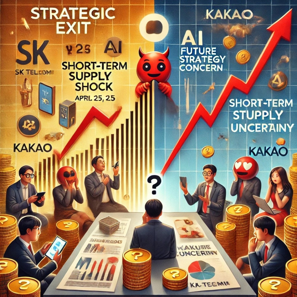 - 2025년 4월 25일 오전, SK텔레콤이 보유하던 카카오의 주식을 전량 매각하겠다고 발표한 직후, 카카오의 주가는 급반응을 보였습니다. 당시 카카오는 전일 대비 5.32% 하락한 37,350원에 거래되었으며, 장중 최저가는 37,150원까지 떨어지는 등 투자자들이 매도에 나섰습니다. 이는 주식 시장에서 매각 소식이 전해지자 SK텔레콤의 지분 매각으로 인해 카카오의 성장이 위축될 것이라는 우려가 커졌음을 보여줍니다.